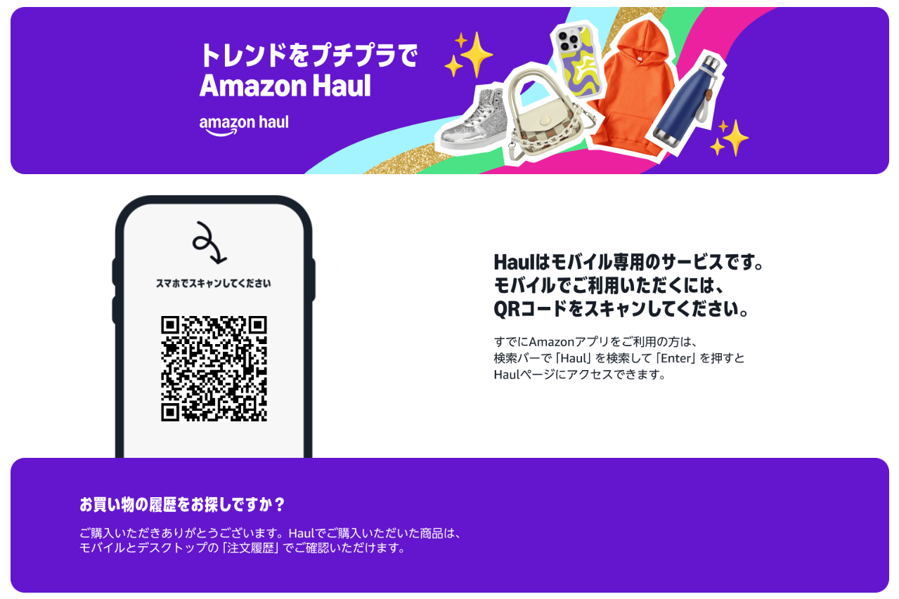 「Amazon Haul」は2025年10月15日から日本で開始された新サービスです。スマフォ専用サイトで、平均800円という低価格商品が特長らしいです。