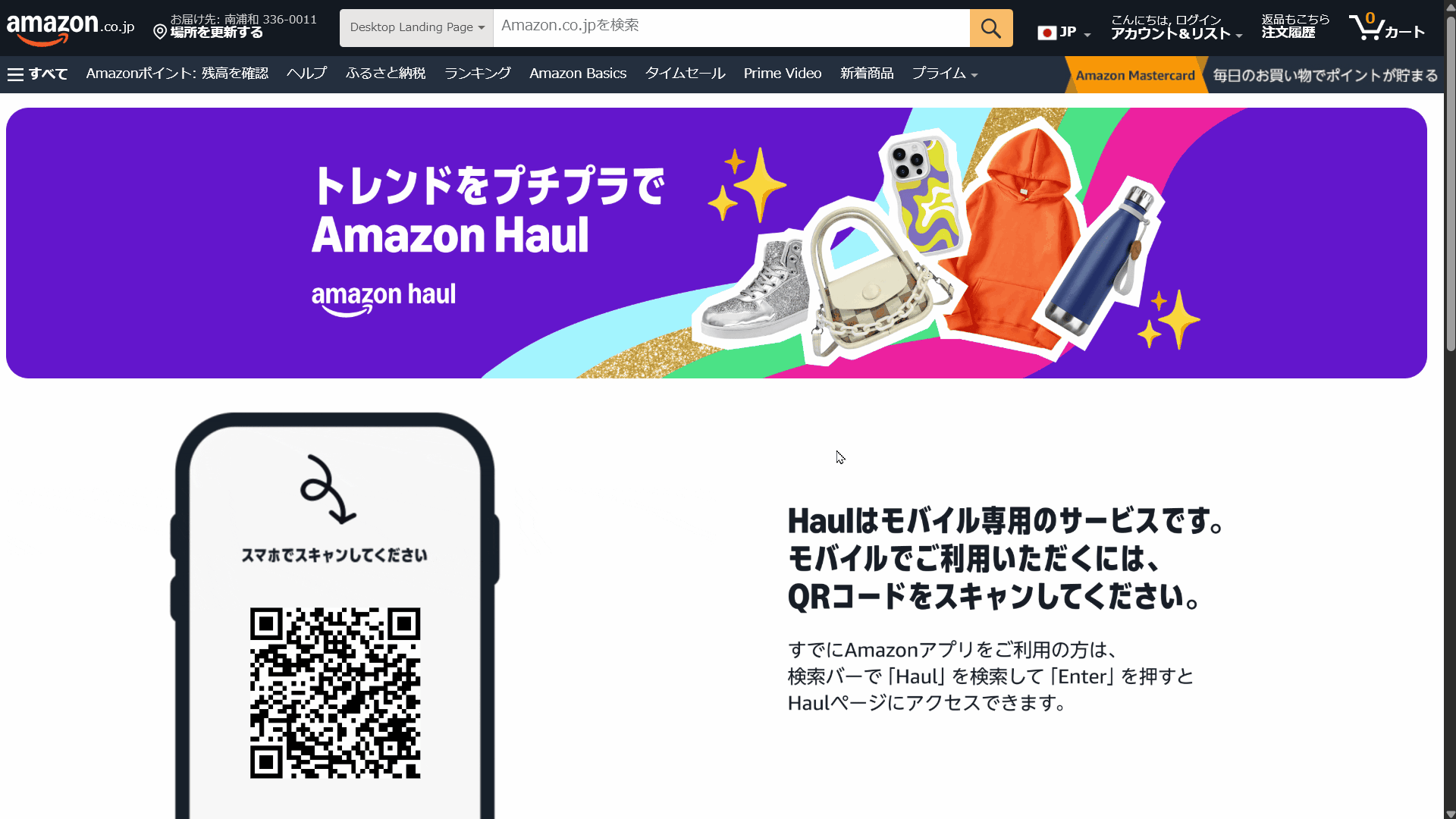 以下、Amazon HaulをPCで表示する手順です。