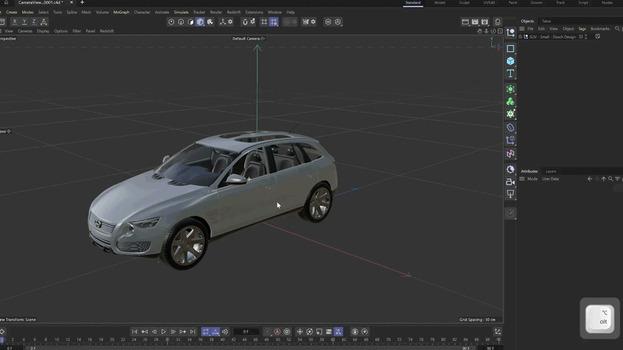 Cinema 4D の Take システムはアニメーションワークフローへの対応がさらに向上し、テイクごとに個別のフレーム範囲を設定できるようになりました。 テイクを切り替えたり、手動でオーバーライドしたりせずに、テイクをアニメ化できます。